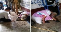 An 85-year-old woman at the entrance of the market where she sold her wares
